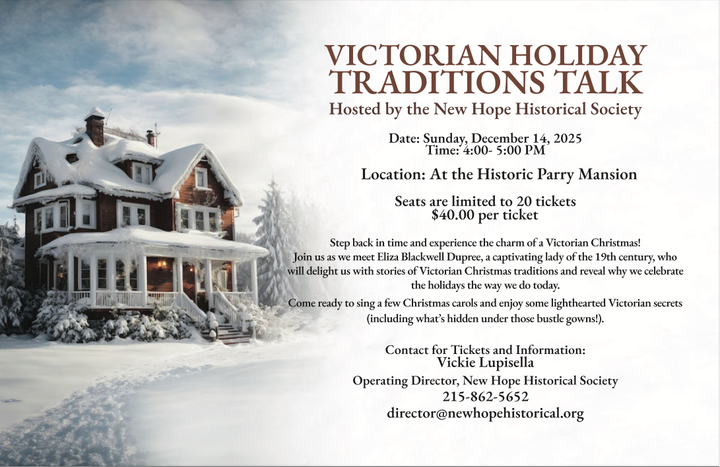 Join the New Hope Historical Society as we kick off the holidays with two enchanting events that capture the warmth and spirit of the season: