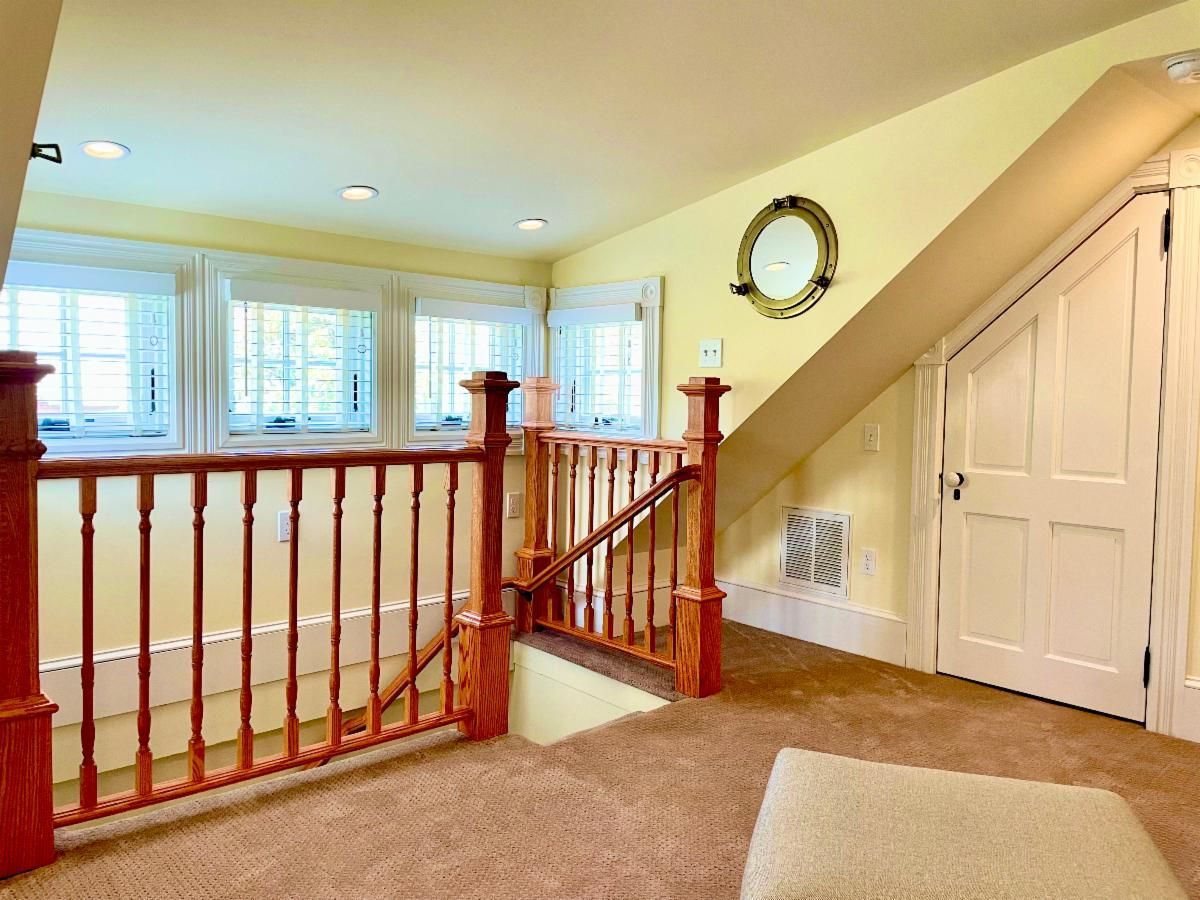An additional staircase leads up to what once was a third-floor unfinished attic. The roof line was so low that you literally had to get onto your hands and knees to enter, but once inside there was ample ceiling height. A new dormer was added to fix this issue and the attic now includes additional living and office space.