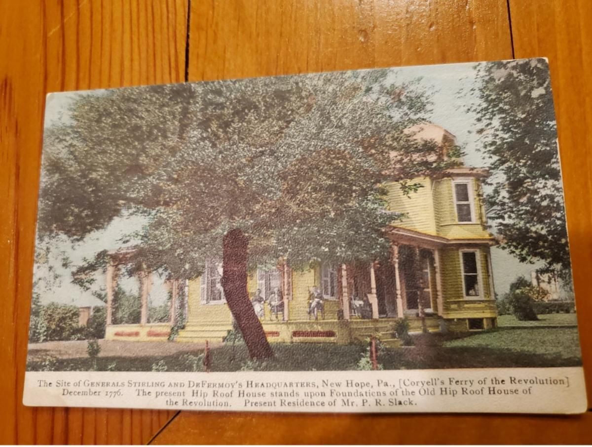 The current structure was built by Mary Ann Slaughter in 1870 on the stone foundation of the original 1720 “old hip-roof” house. In the 1907 edition of W. H. H. Davis’ History of Bucks County, Davis states the older house was used as headquarters by patriot Alexander Lord Stirling during the Revolutionary War. Washington and his troops were camped across what is now Bridge Street from December 8, 1776, to December 25, 1776, just before the historic Battle of Trenton. That became a victory for the Continentals and an emotional turning point in the war. Inn owner Carl Glassman explains that there was a cannon in the front yard facing the slope down to Ferry Street in case the British were to approach. At that time there were mostly fields between the house and the river. As a salute to its role in the revolution, the house subsequently became known as “The Old Fort” or “The Headquarters House.”