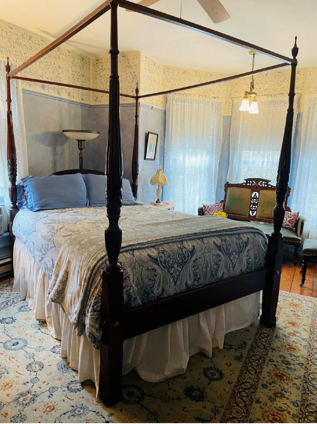In the 1930’s the house began to be used as a rooming house, a role that continued through several owners and decades. Carl’s and Dinie’s tenure has led to the expansion of the mansion with a rear addition in 1999, and upgrades such as private baths for each of the 10 lodging rooms. The construction led to the discovery of an underground wood and stone tunnel running from the kitchen to a gazebo located on the east side of the house. The tunnel was accessed inside the house from the wooden kitchen floor. The residue of gunpowder and candles was found in the tunnel. It is theorized that the tunnel was likely used to store ammunition for the Continental Army during the revolution. Later it may have served as a hiding spot for the enslaved on the underground railroad as they awaited a friendly mule barge northbound on the Delaware Canal. The current owners state that two of their visitors are said to have seen the ghost of a 12-year-old girl who is felt to be an enslaved person looking for her parents.
