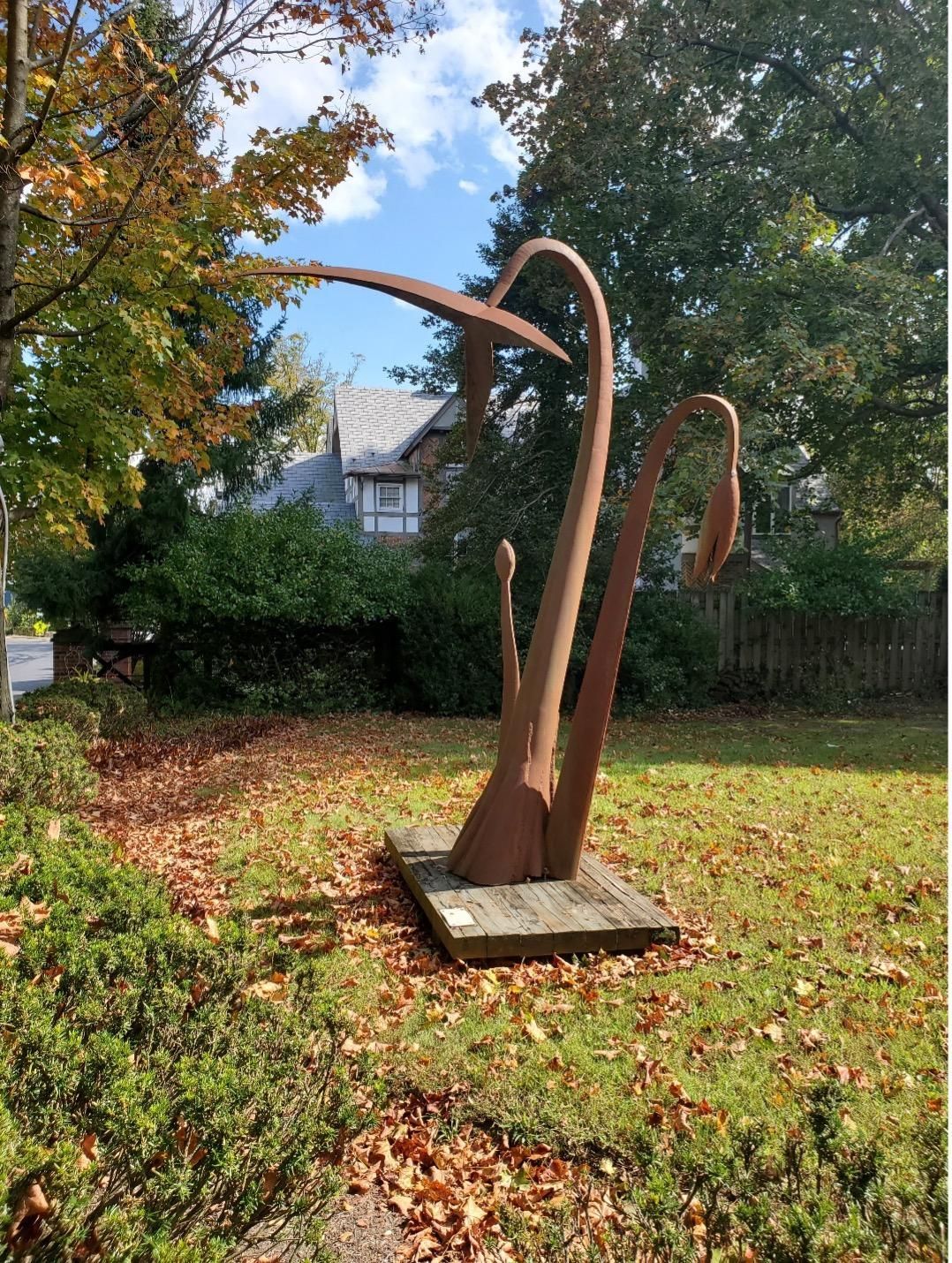 At one time, the property extended as far as the Aquetong Creek. Southern parts of the property were sold off years ago and newer structures were constructed there. Besides the gazebo mentioned above, there is a view that captures that of the famous Joseph Pickett painting of New Hope. In addition, a Ray Faunce sculpture from the New Hope Arts Outdoor Sculpture Project, Triffids, can be seen from Bridge Street.
