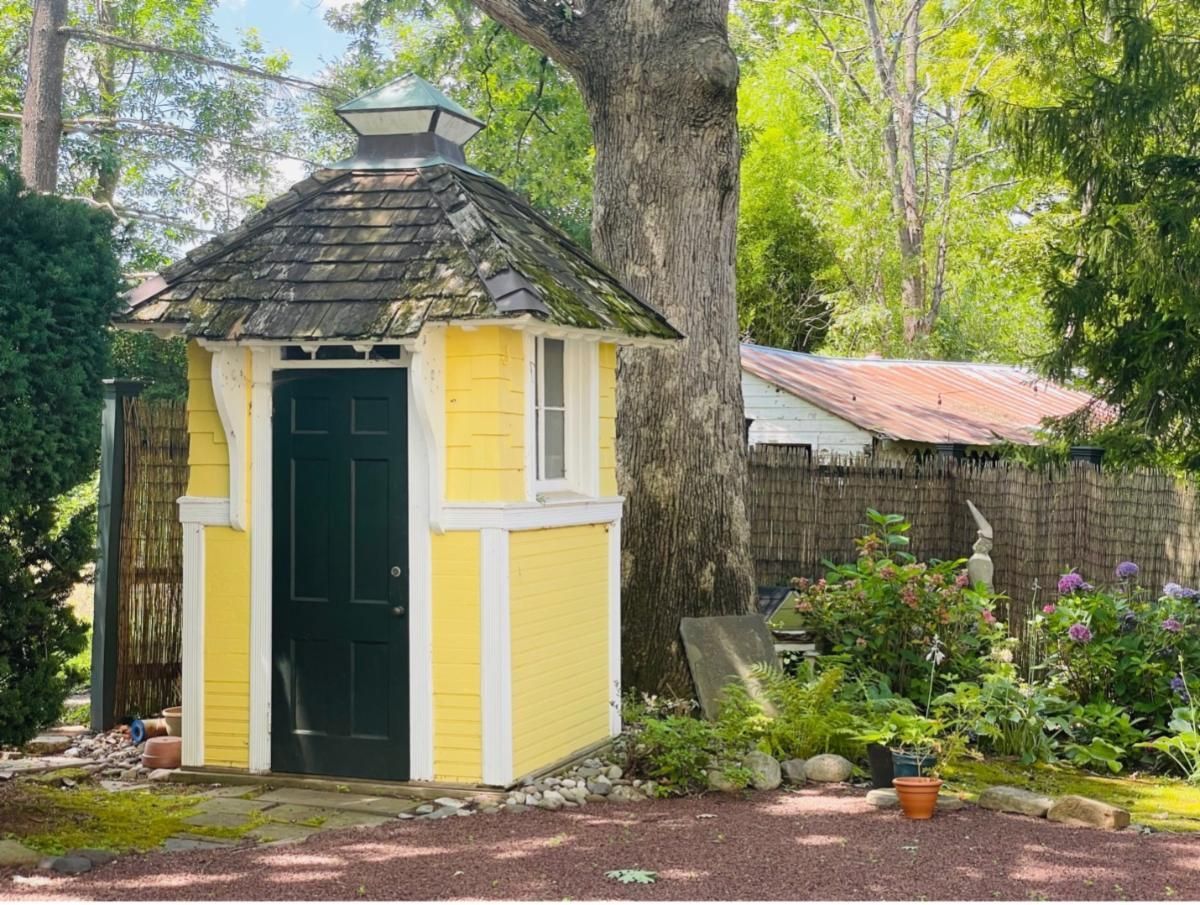 Ms. Baker has added wallpaper in the kitchen and other rooms, including the reproduction of a 16th-century wallpaper pattern in the master bedroom suite. The attic yoga and meditation studio are reached by a wooden staircase with curved sycamore branch railings. An outhouse rescued from demolition in Philadelphia now serves as a garden shed in the backyard. The owner had the exterior stucco painted yellow reminding her of her Southern roots.